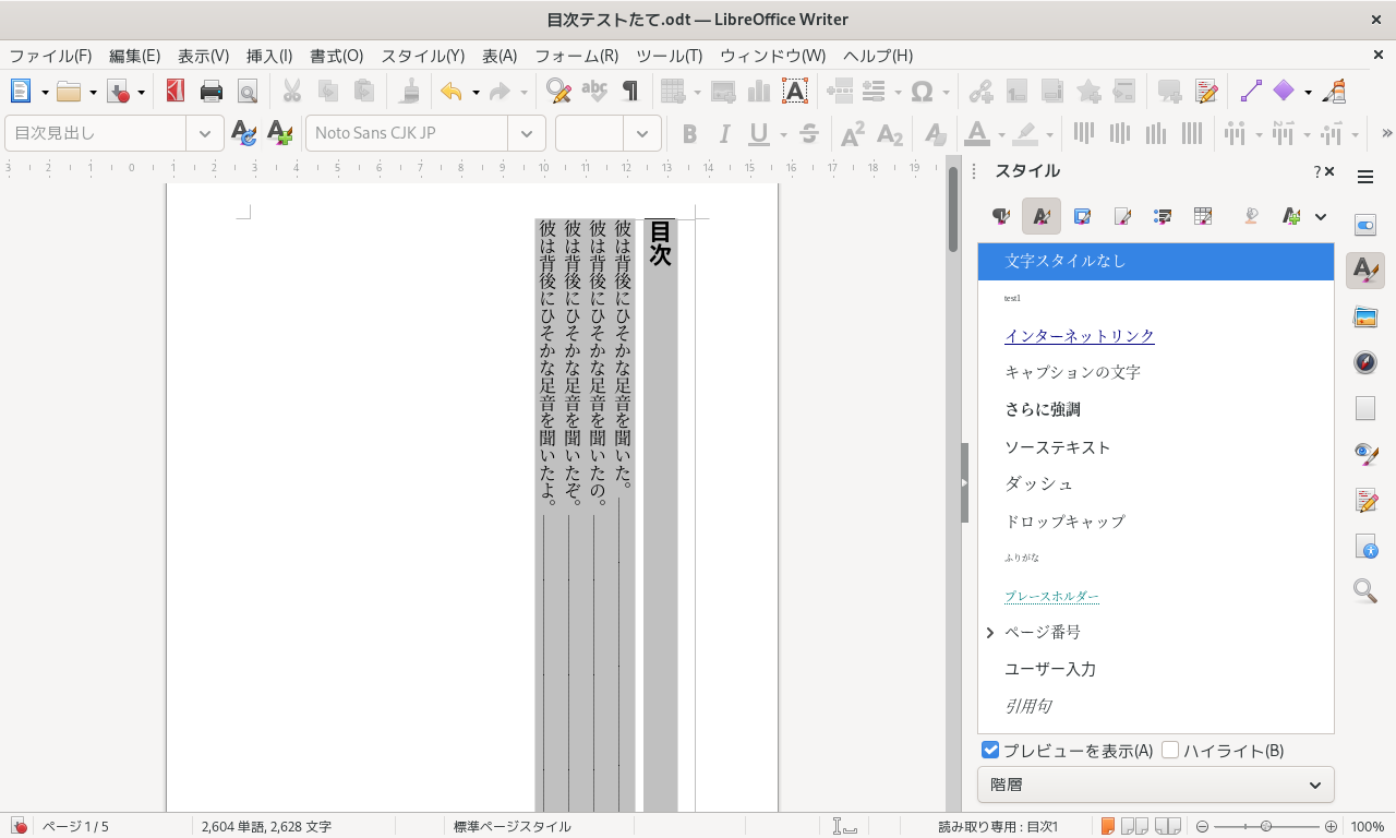 Writerで設定してみます。ちょっと太いけどそれっぽくなった。回避策としてどうですか?